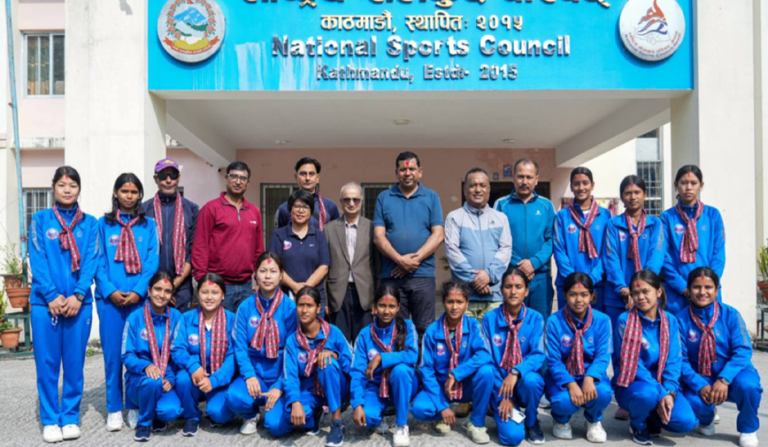 काठमाडौँ, वैशाख ६ गते । नेपाल हक्की सङ्घले भारतमा हुने सिनियर महिला हक्की प्रतियोगितामा भाग लिने नेपाली राष्ट्रिय महिला टोलीको बिदाइ गरिएको छ । टोलीलाई राष्ट्रिय खेलकुद परिषद (राखे...