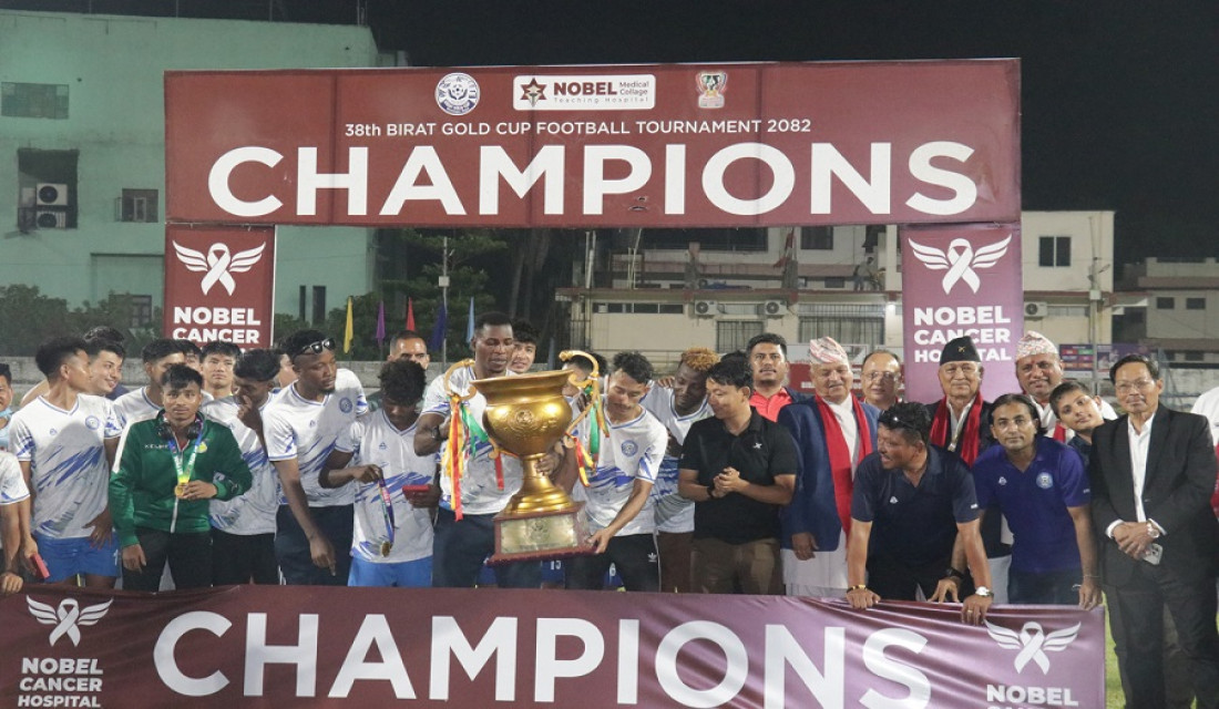 खेमराज सापकोटारानी (विराटनगर), वैशाख ७ गते । झापा ११ ले विराटनगरमा सम्पन्न ३८ औं संस्करणको ‘नोबेल विराट गोल्डकप’ फुटबल प्रतियोगिताको उपाधि उचालेको छ । आइतबार राति भएको फाइनल खेलमा...