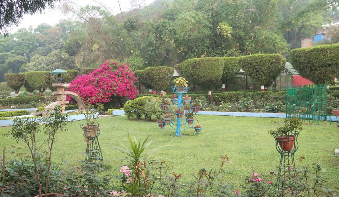 काठमाडौँ महानगरपालिका–१६ स्थित बालाजु बाइसधारा उद्यानमा फुलेका फूल र बोटबिरुवाको हरियाली । तस्बिरः हरिराम भेटुवाल /रासस