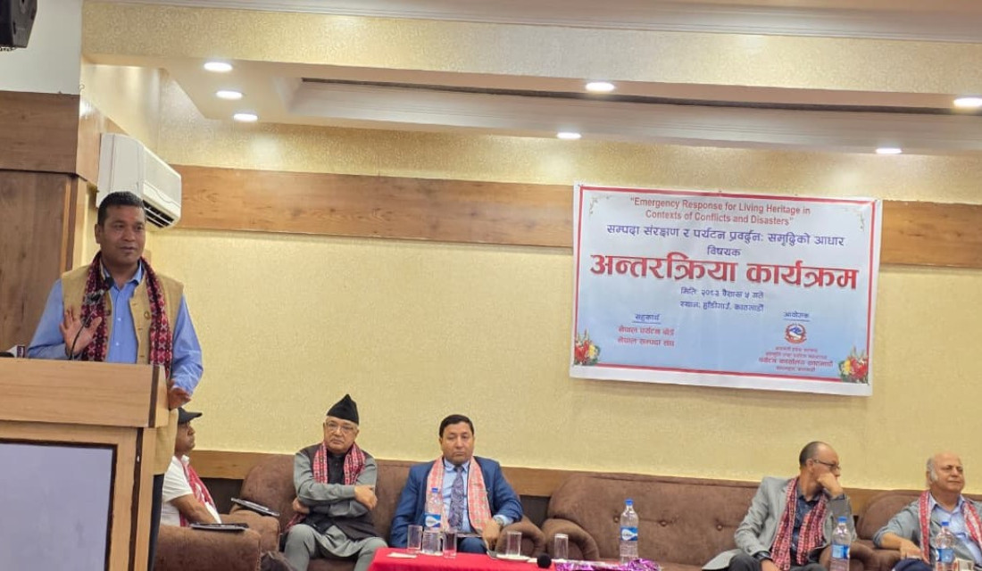गोरखापत्र अनलाइनकाठमाडौँ, वैशाख ५ गते । संस्कृति तथा पर्यटनमन्त्री सुरेश श्रेष्ठले नेपाल मौलिक सम्पदाको ठुलो सम्भावना भएको देश भएकाले यसको संरक्षण र प्रवर्धनमा सबैले ध्यान दिनुपर्न...